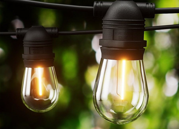 Huge patio? Narrow alleyway? Something in between? Doesn’t matter. Our festoon lights come in a range of colours and lengths, and can be connected to cover up to 100m. Our team can consult on your space if you have a commercial area to tackle.